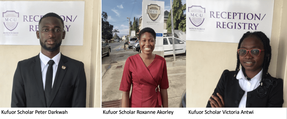 Three Kufuor Scholars have been offered scholarships to pursue graduate education at MountCrest University College.