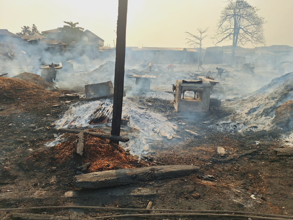 It ravaged the main sawmill and destroyed essential equipment, along with logs of wood valued at thousands of cedis.