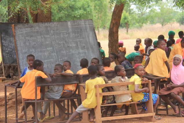 The school was absorbed by the Ghana Education Service in 2013 with the two rooms the community had built with support from Anna Fred to roof the pupils until it was declared not fit for use three years ago, forcing teachers to conduct classes under trees.