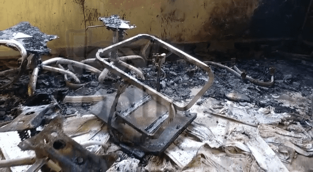 According to eyewitnesses, the suspects reportedly vandalised the glass doors before setting all furniture in the commander's office on fire.