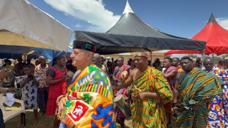 Paramount Chief Nana Baffour Obeng-Appiah I, alongside his elders, presided over the durbar, formally recognising Ozols for his longstanding support and commitment to community development.