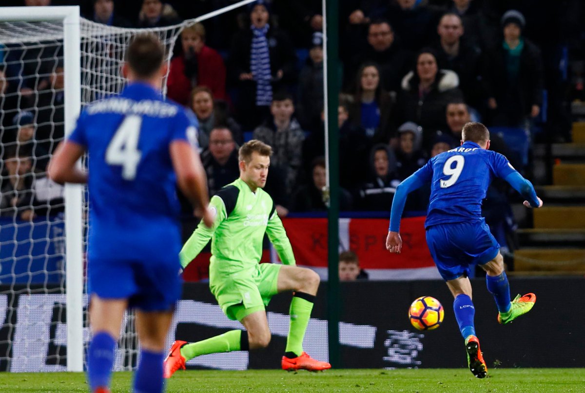 Liverpool failed to get hold of the ball in midfield and Marc Albrighton instantly split the visitors' defence with a first-time ball to put Vardy clean through.