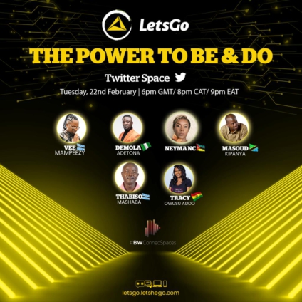 The LetsGo Twitter Space event is a vehicle to connect start-ups, side hustles, innovators digital ideators and African Fintechs with young entrepreneurs, visionaries, creatives, trailblazers, and trendsetters to deliver a sharing and cross-pollination of ideas that can later be transformed into viable business opportunities.
