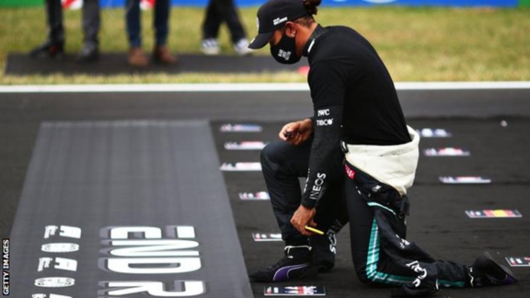 Hamilton, 35, took a knee on the grid and wore anti-racism slogans in support of the cause during the season.