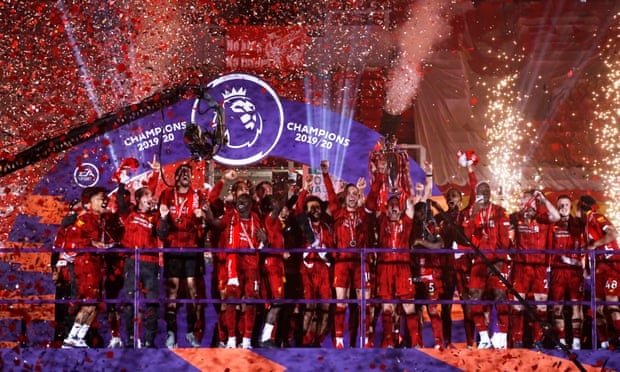 And then it was time for the ceremony Liverpool have waited three decades to enjoy - albeit conducted in the somewhat surreal surroundings of a virtually empty stadium.