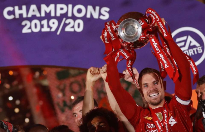 On Wednesday Henderson, who is recovering from a knee injury, received the Premier League trophy from Reds legend Sir Kenny Dalglish at a near-empty Anfield.
