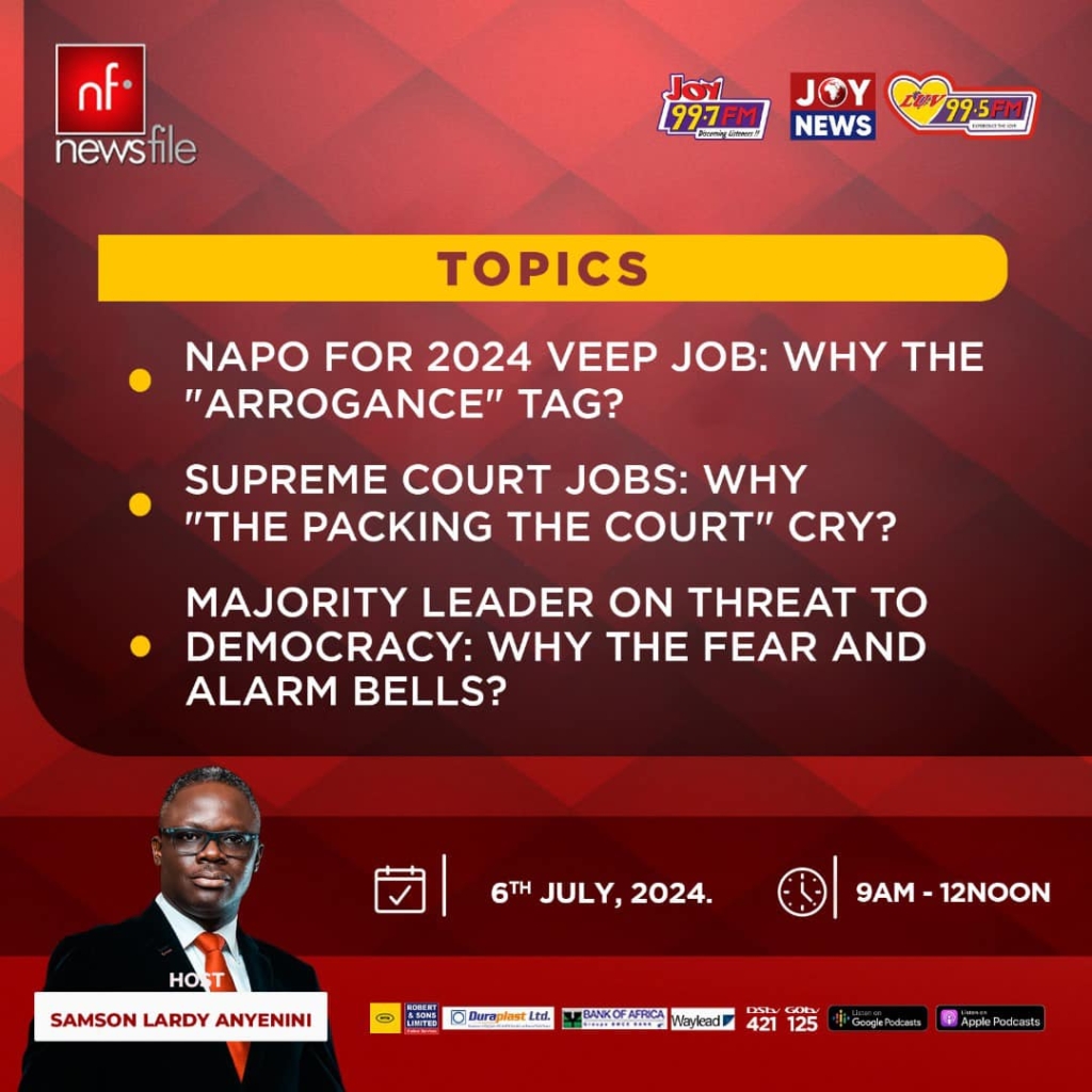 This Saturday's edition of JoyNews' Newsfile promises insightful discussions on pressing issues in Ghana today.