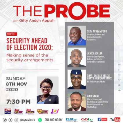 JoyNews' The Probe tonight will analyse the security arrangements for the 2020 elections.