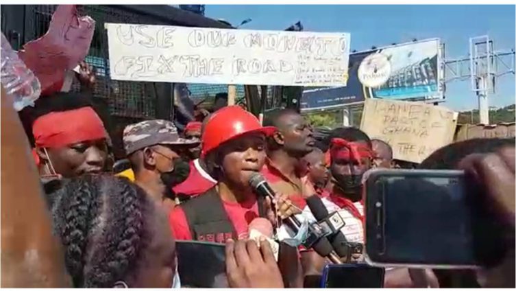 Addressing the protestors, who were predominately clad in red, Francis-Xavier Sosu charged residents in the area to come together in the fight for better roads.