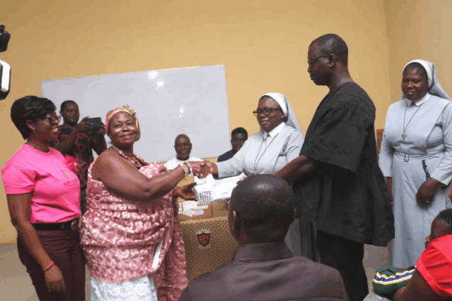 Msgr. Joseph Marfo-Gyimah, from the Justice and Peace Commission of the Catholic Diocese of Sunyani, who played a key role in Ms Gaisie’s admission to SAHESS in 1989, praised her and the MagMina Foundation for their generosity and urged other old students to emulate the gesture.