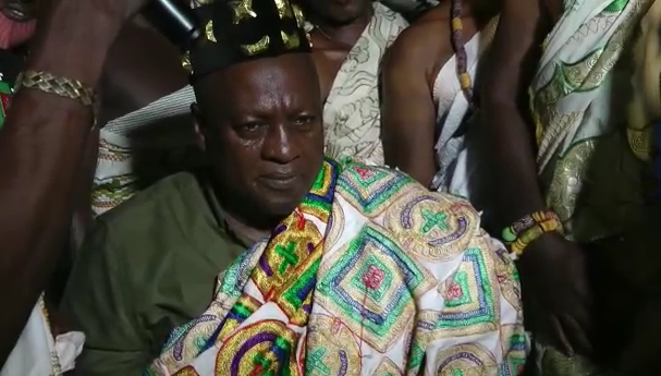 The former President was given the stool name Osahene Dr. John Mahama, with all traditional rites performed.