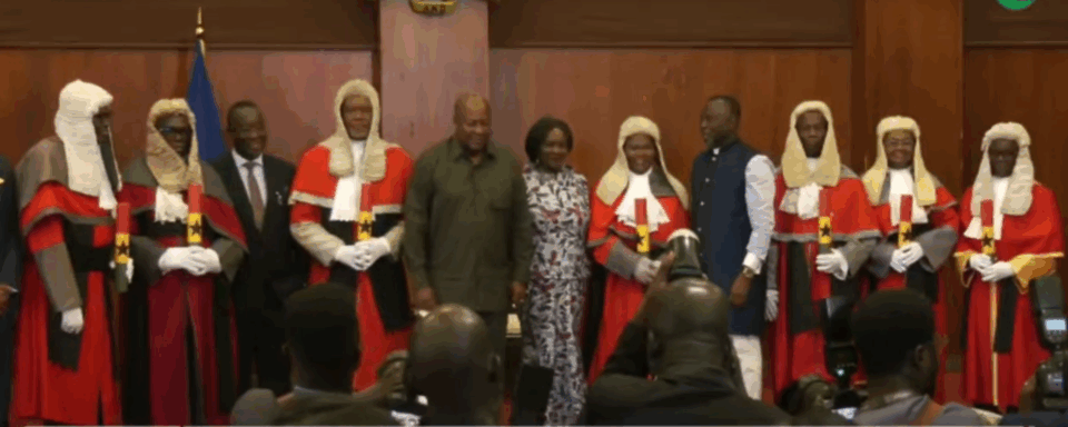 President John Dramani Mahama today, Thursday, July 3, presided over the swearing-in ceremony of seven new Supreme Court justices at the Jubilee House, marking a significant expansion and reinforcement of Ghana's apex court.