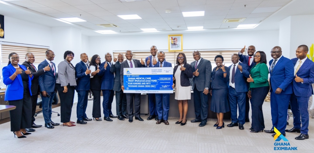 The senior management team of the Ghana EXIM Bank has donated four hundred and fifty thousand Ghana cedis (GH₵450,000) to the Ghana Medical Care Trust Fund, also known as ‘MahamaCares’. The donation, which was the voluntary contribution of management staff of the bank, is the first instalment of the total sum intended for the Fund.