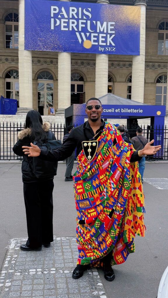 The brand is not only showcasing its fragrances but also making a bold cultural statement, with its team adorned in traditional Ghanaian attire, including kente, agbada, and fugu, symbolising a proud representation of Ghana and Africa on the global stage.