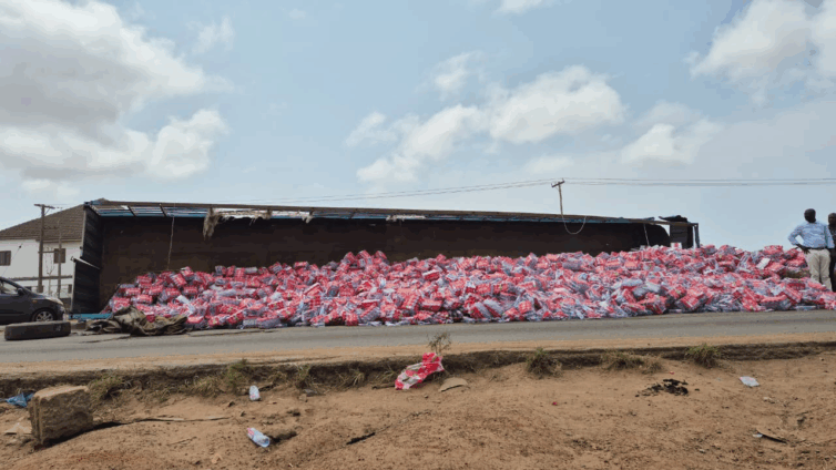 Motorists along the N1 Highway between the Tema Motorway Roundabout and the TT Brothers traffic light have been left stranded for hours following an accident involving a trailer transporting thousands of bottles of water.
