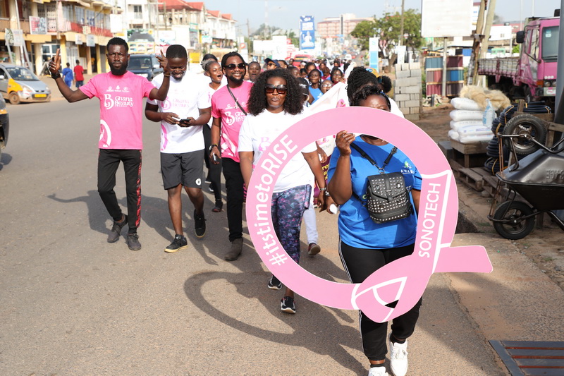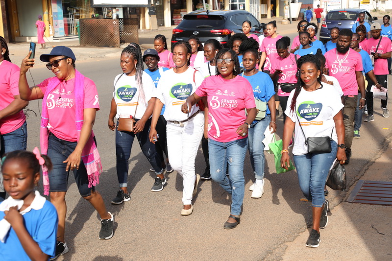 The program which started with a fitness walk Dubbed:  Pink Ribbon Walk and Breast Cancer Screening was used to disseminate information among residents on the dangers of breast cancer and saw participants embarking on a five-kilometer walk on the Spintex Road.
