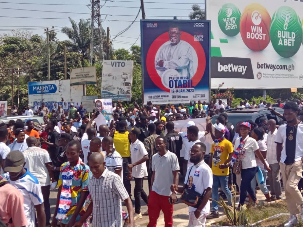 They led his convoy to the Manhyia Palace, creating massive traffic on the Airport Roundabout-Manhyia stretch and giving the police a hectic time in controlling traffic.