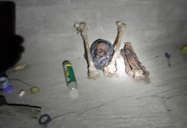 According the police, decomposed bones suspected to be human skull, jaw and ribs were found and retrieved from the suspect room.