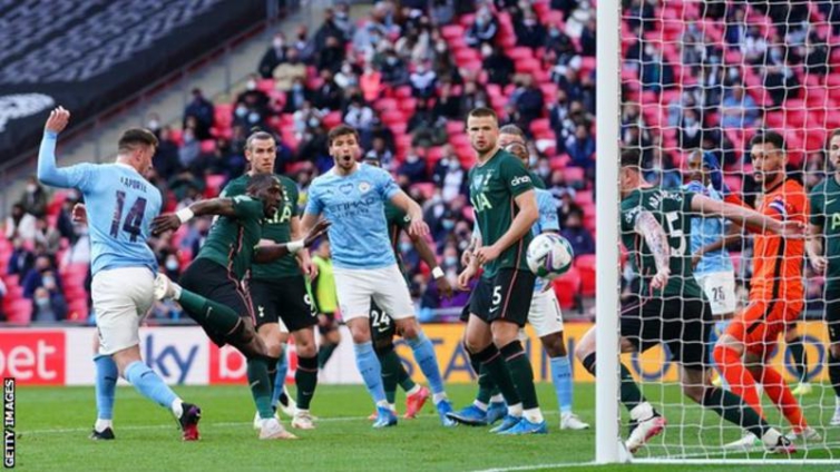 City defender Aymeric Laporte, arguably fortunate to be on the pitch after escaping a yellow card in the first half before being cautioned after the break, rose above Spurs substitute Moussa Sissoko to head home Kevin de Bruyne's free-kick eight minutes from time.