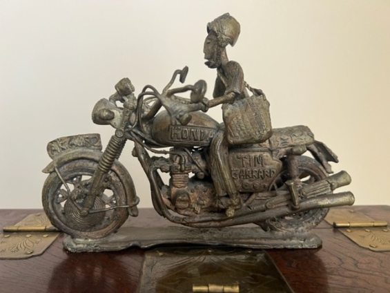 Among Waterfield’s donations is the famous brass self-portrait of Timothy Garrand on his motorbike in Kumasi by Yaw Amankwa in 1980.
