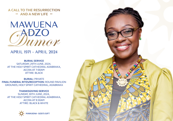 The Dumor and allied families announce the following funeral arrangements for Mawuena Adzo Dumor who passed away on April 10, 2024: