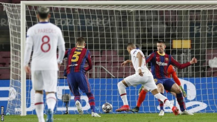 With Barca looking to pull a goal back, they were caught on the counter-attack and Mbappe curled in the goal of the night with his third.
