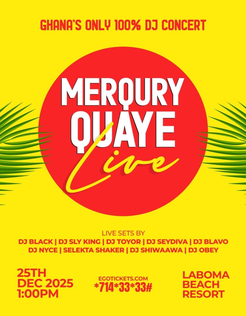 All is set for the highly anticipated Mercury Quaye Live DJ Concert, scheduled for Thursday, December 25, at the Laboma Beach Resort in Accra.