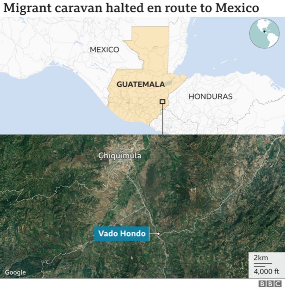 In Guatemala on Monday, security forces broke up a caravan of about 4,000 mostly Honduran migrants who had been camped out near the village of Vado Hondo.
