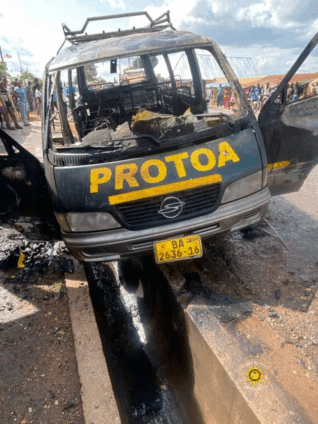A SangYong minibus was completely gutted by fire on Monday, June 30, along the Sawla–Wa highway, opposite the Amdaway Fuel Station.