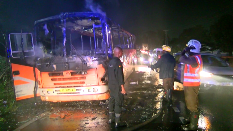 But the passengers say the late arrival of the officers of the Ghana National Fire Service led to the total burning of the bus.