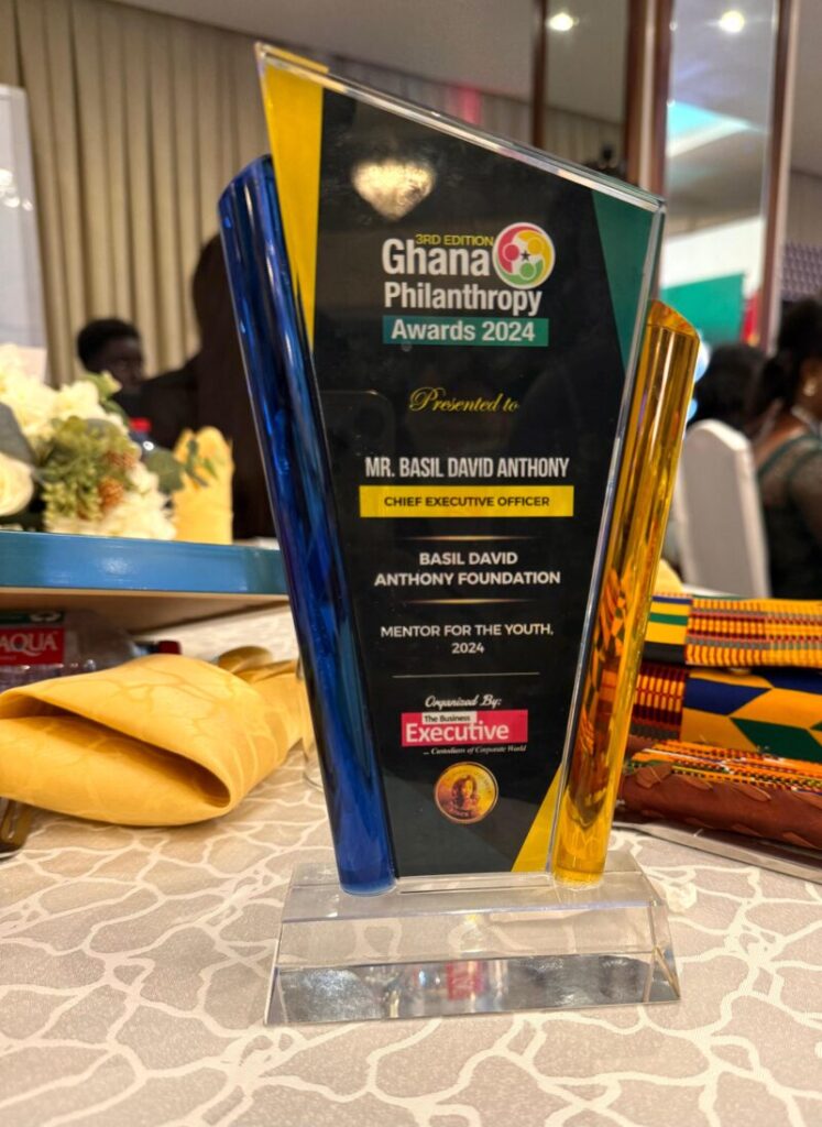 The young and vibrant Chief Executive Officer (CEO) of Modern Floors and Walls and author of Dream Bigger, Basil David Anthony, has been honoured as ‘Ghana’s Outstanding Mentor of the Youth’ for his exemplary conduct and remarkable determination to achieve greatness from a young age.