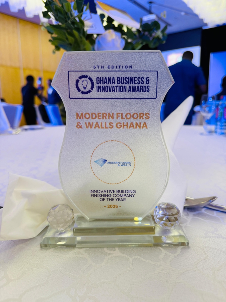 Modern Floors and Walls has been honoured with the prestigious title of “Innovative Building Finishing Company of the Year” at the 2025 Ghana Business and Innovation Awards.