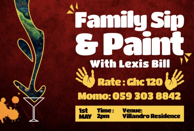 Dubbed the Drive Time Family Sip and Paint with Lexis Bill the event will have a number of activities including sip and paint, card games, ludo, monopoly, draft, oware, dancing competition, musical chairs, and bottle flip challenge.