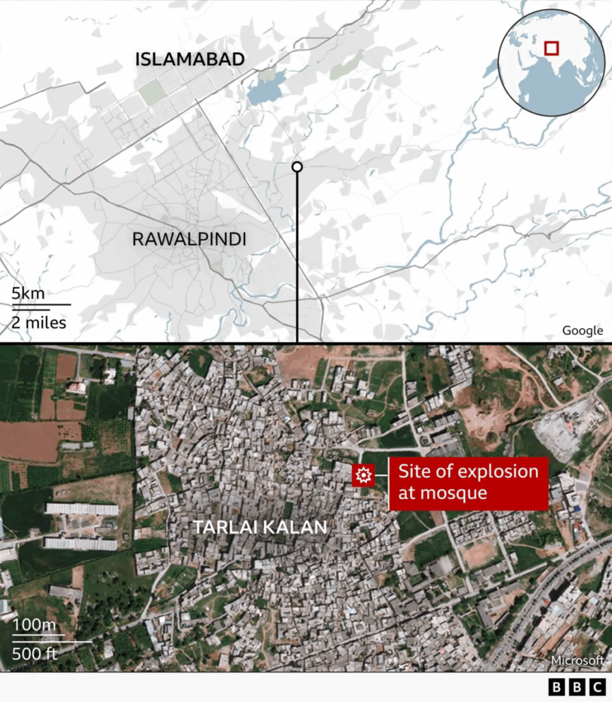 Police officials say a suicide bomber detonated a device after approaching the gates of the Shia mosque in the Tarlai area of the city, while eyewitnesses have told the BBC the blast was preceded by the sound of gunfire.