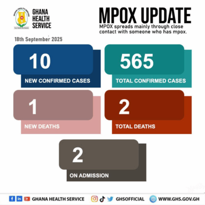 The Ghana Health Service (GHS) has confirmed 10 additional cases of mpox, raising the country’s total confirmed infections to 565.