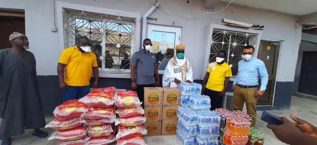 The items donated comprised bags of rice, cartons of cooking oil, bags of sugar, crates of tin milk, cartons of milo, soft drinks, water, rams, cash and airtime among others.