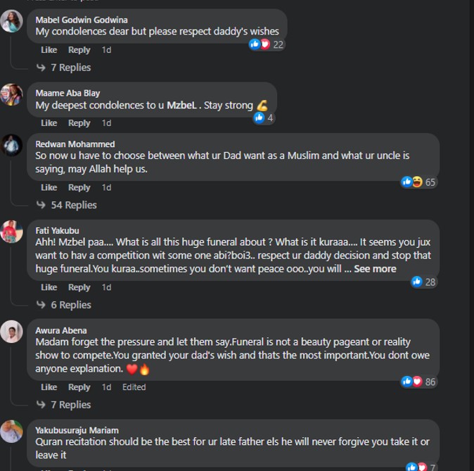 “Thus no funeral, 3 days, 1 week or whatsoever. Honour ur father’s will and you will be blessed. Don’t try and go against his will as people are ordering you to. Kindly do as he says and you will be rewarded. But if you wish to please the world and reject ur father’s will, that’s ur business. May Allah continue to forgive, have mercy and grant Mr. Amoah Aljannah,” she wrote.