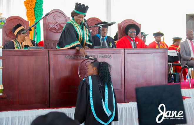Professor Jane Naana Opoku-Agyemang, the running-mate of the National Democratic Congress (NDC), at the weekend performed her last academic ritual as Chancellor of the Women’s University in Africa (WUA) in Harare, Zimbabwe.
