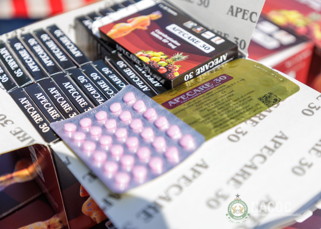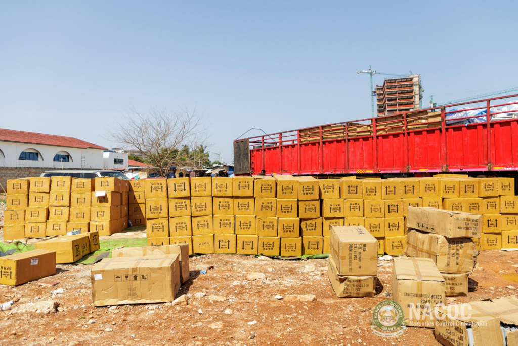 The Narcotics Control Commission (NACOC) has seized a massive consignment of illicit pharmaceutical drugs, intercepting a 40-foot trailer loaded with an estimated five million tablets of Tapentadol 250mg in a high-stakes operation.