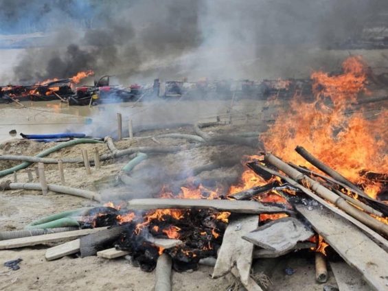 The operation led to the seizure and destruction of 50 chanfang machines, polytanks, generators, pipelines, and several makeshift structures erected as shelters for the miners.
