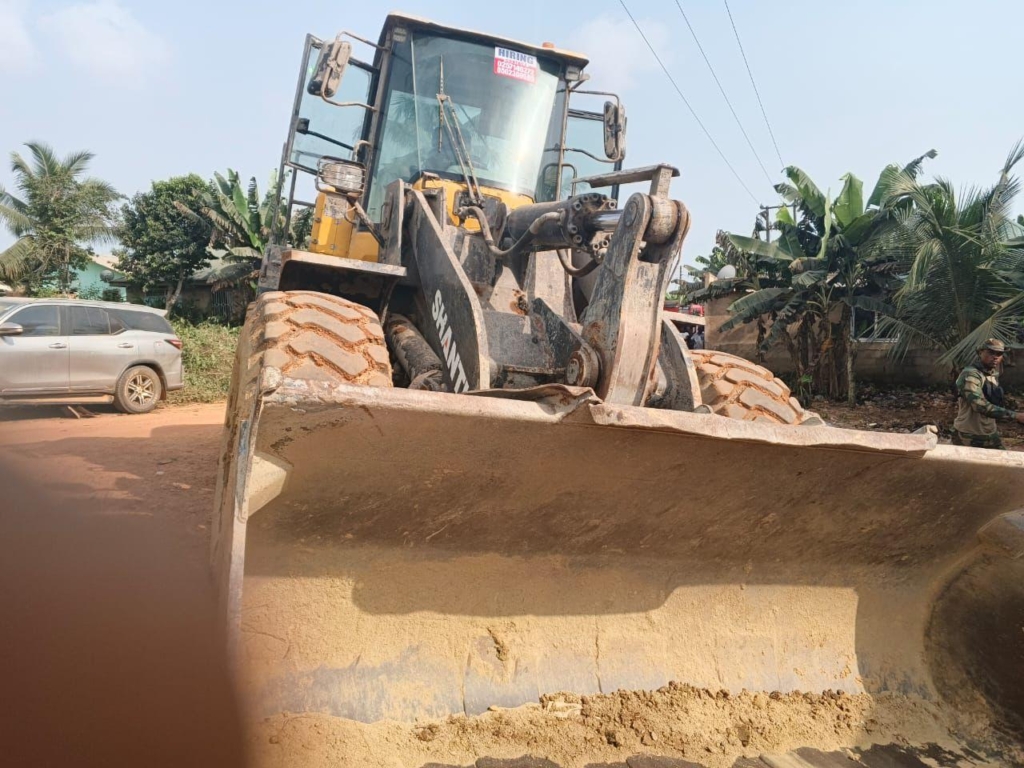 An excavator abandoned at the location was immobilised by removing its monitor and other vital components due to the unavailability of lowbed services.