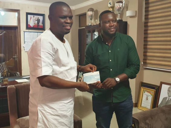 The cheque was received by the Minister for Youth and Sports, Mustapha Ussif, ahead of the Black Stars' crucial final group qualifier against South Africa.