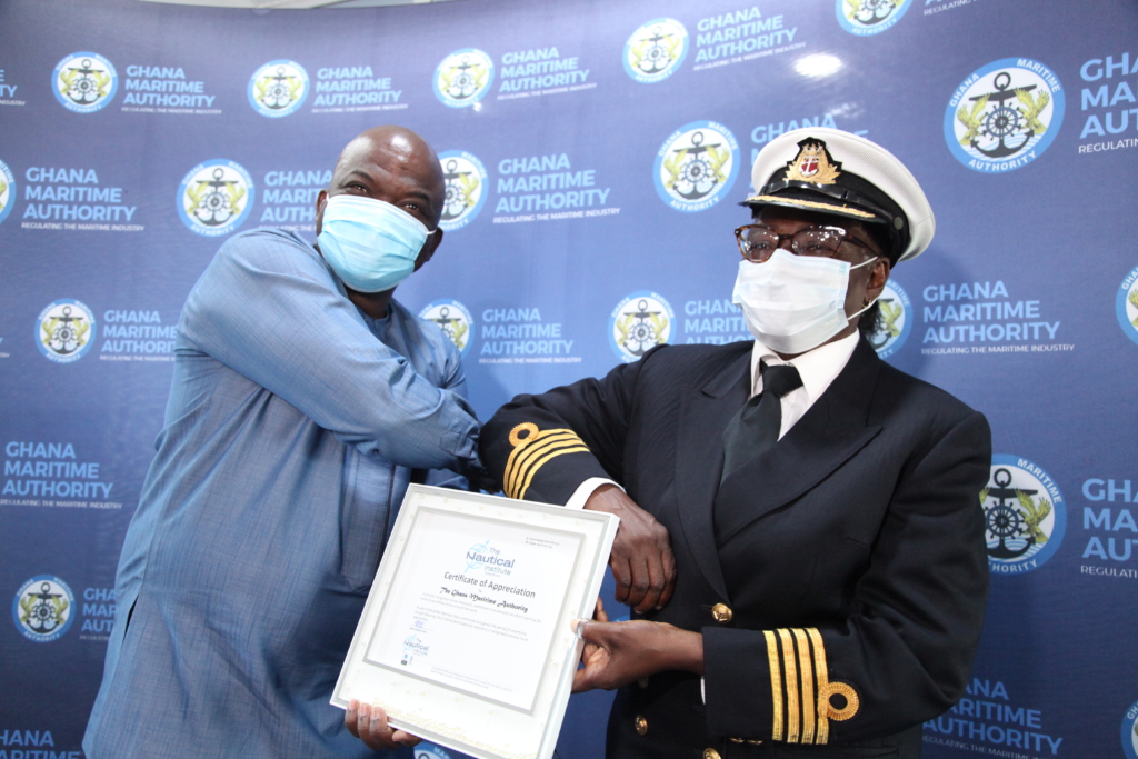 Speaking at a short ceremony in Accra, the branch Secretary of the Nautical Institute, Captain William Amanhyia, explained the Ghana Maritime Authority and Captain Joshua Nii Addo were honoured for their “pivotal role in facilitating and handling crew changeover during the pandemic.”