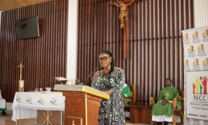 Kathleen Addy, the Chairperson of the National Commission for Civic Education (NCCE), has called on faith-based organisations to unite in faith and be peace ambassadors for the 2024 general elections.