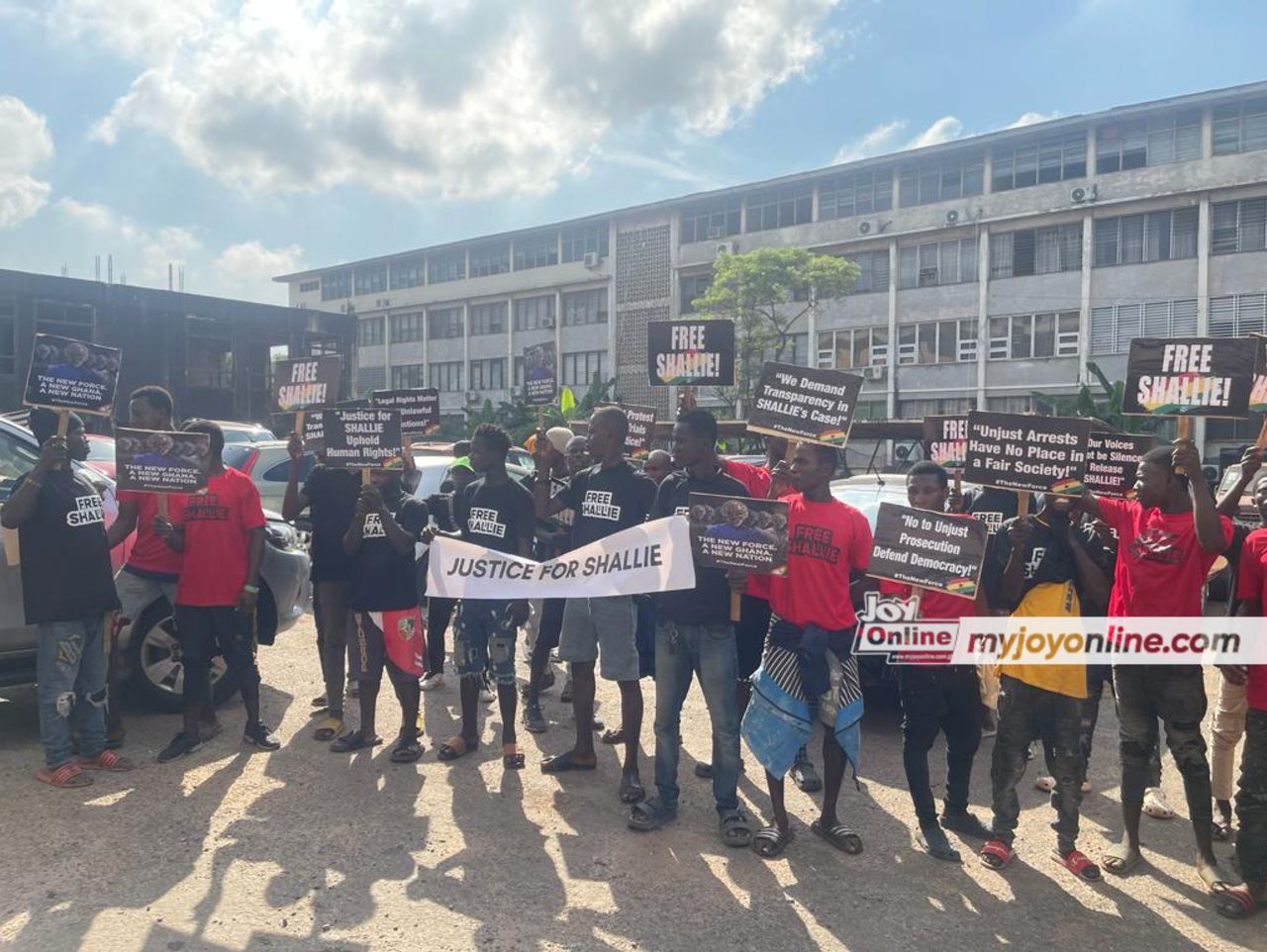 Some persons were spotted hoisting placards at the premises with the inscription 'Justuce for Shallie' among others.