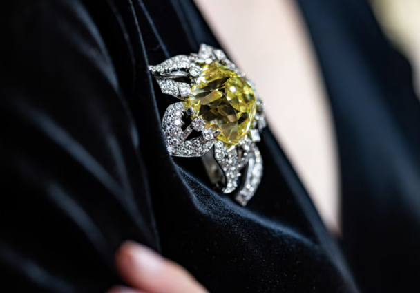 Yellow diamond brooch resembling Queen Elizabeth’s up for auction