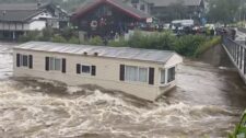 Floodwaters in Norway send mobile home crashing into bridge