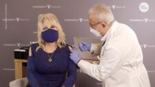 Dolly Parton has received her first dose of the Covid-19 vaccine