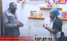 Chef Failatu passes 110 hours of cooking as she prepares jollof with Pomo Tomato Mix
