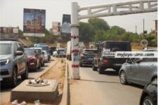 Broken height limit pole on East Legon Under-bridge stretch poses potential danger to motorists